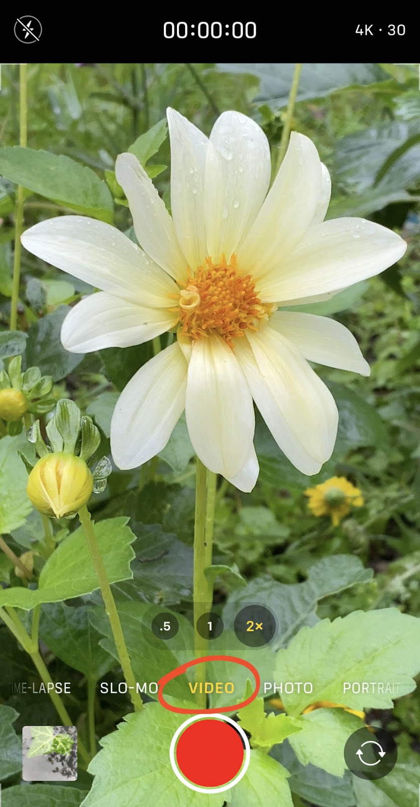 Cukup tahan tombol rana untuk mulai merekam video. Tombol rana akan berubah menjadi merah. Dan penghitung waktu video akan muncul di bagian atas layar.