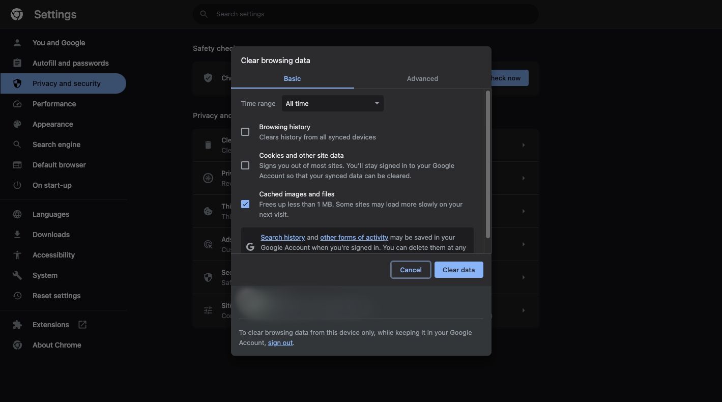Hapus centang semuanya kecuali Gambar dan file yang disimpan dalam cache, lalu klik Hapus Sekarang.